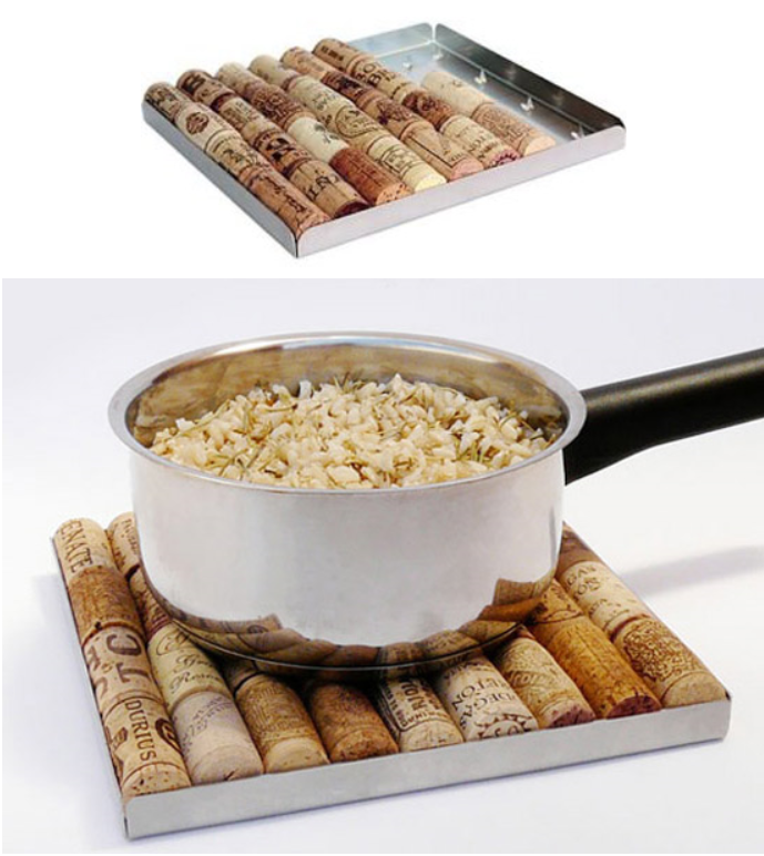 Old wine corks glued into a wooden picture frame to make a heat proof mat.: